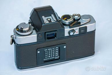 La prima con un esposimetro automatico (a priorità di diaframma), doppia esposizione sullo stesso fotogramma, funziona anche senza batterie alla solo velocità synchro X o posa B.