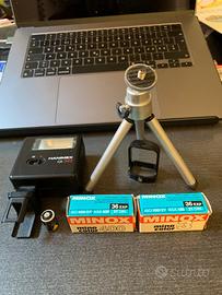 Minox C Nera Vintage Subminiature Cameras Con Custodia in Pelle Usata pochissimo quasi nuova Original Box Inclusi: 1 Hanimex Flash CX 343 con adattatore Minox 1 Treppiedi con adattatore per Minox 1 Film 36 Exp Color 100 ASA 1 Film 36 Exp Color 100 ASA 1 Batteria 1 Manuale