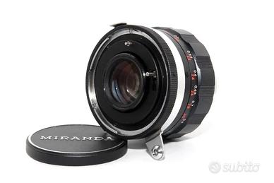 Auto Miranda 50mm f:1.8 Obiettivo Standard con Innesto a Baionetta Miranda con Tappo Originale Dedicato alle Reflex Miranda Sensomat, Sensorex, ecc. *Utilizzabile anche su vari modelli di fotocamere digitali CON APPOSITO ADATTATORE* OGGETTI COMPRESI OBIETTIVO AUTO MIRANDA 50mm F:1.8 TAPPI ANTERIORE ORIGINALE STATO DEGLI OGGETTI OBIETTIVO IN CONDIZIONI OTTIME E FUNZIONANTE. DIAFRAMMA FUNZIONANTE. GHIERA FLUIDA. SENZA GRAFFI E/O FUNGHI SULLE LENTI. SEGNI D'USO PRESSOCHE' ASSENTI. DESCRIZIONE l'obiettivo MIRANDA 50mm F.1,8, è un classico obiettivo standard in versione con massima apertura F.1,8. Dotato di costruzione solida, è un obiettivo luminoso, ottimo per tutte le situazioni fotografiche e di grande qualità. Produce immagini con ottimi contrasto e dettaglio. Innesto con Baionetta Miranda. Può essere utilizzato su moderne fotocamere digitali con l'ausilio di appositi adattatori. *** VEDI GLI ALTRI ARTICOLI FOTOGRAFICI CHE HO IN VENDITA ***