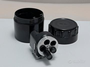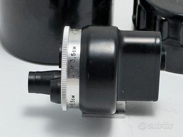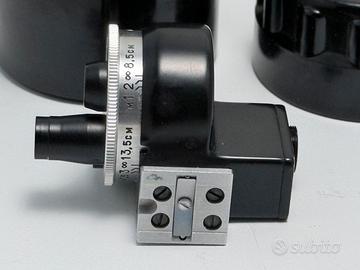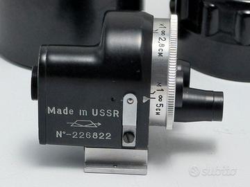 Mirino universale torretta sovietico vintage, spesso utilizzato con fotocamere a telemetro come le Zorki o FED. Funzione: Consente di inquadrare la scena per diverse lunghezze focali ruotando la torretta frontale. Focali supportate: Include impostazioni per obiettivi da 28mm a 135mm. Compatibilità: Si monta sulla slitta accessori superiore della fotocamera. Caratteristiche: Dispone di compensazione della parallasse per le distanze ravvicinate. Pari al nuovo Era in kit con Fed4