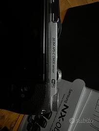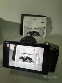Vendo fantastica fotocamera mirrorless Samsung mx300m colore marrone e alluminio satinato , con obiettivo stabilizzato 16-50mm OIS f/3,5-5,6 power zoom ,tappo corpo macchina e tappo posteriore dell’obiettivo ,batteria originale più due non originali e caricabatterie . N.b. Volendo tra le mie inserzioni ho anche l’obiettivo 18-55 sempre stabilizzato . Il nuovo modello è la NX300M, e si distingue dal precedente per via dello schermo, che dispone di uno snodo con un maggiore angolo di movimento, capace di ribaltarsi fino a 180°, permettendo di effettuare autoscatti e auto-riprese in maniera molto più semplice (NX300 si fermava a 90°). Il display è un'unità con tecnologia AMOLED, con una diagonale da 3,31" ed un touch screen integrato. Il resto delle specifiche è invece assolutamente immutato: ritroviamo il sensore APS-C da 20,3 megapixel, il range ISO compreso tra 100 e 25.600, la raffica a 8,6 fotogrammi al secondo, la connettività Wi-Fi dual band con SmartShare e NFC.