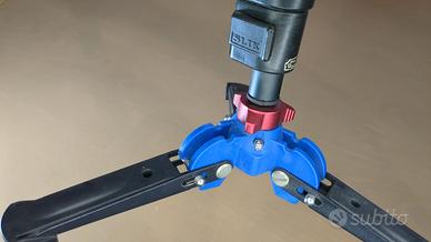 Il monopiede è in alluminio e ha un'altezza massima di 160 cm e un peso massimo supportato di 3 kg. È dotato di una base fluida brevettata per panoramiche senza scatti, di piedini completamente pieghevoli e di twist lock per un set-up semplice e una compattezza estrema.