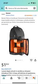 Non ingombrante e puo contenere due reflex con obiettivo o una corpo macchina e fino a 4 obiettivi.