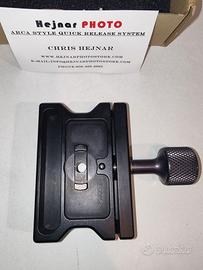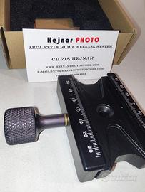 Clamp Arca 70 mm HejnarPhoto, made in U.S.A., alluminio 6061-T6, con innesto a vite centrale ed antirotazione standard Gitzo/Manfrotto/Arca Swiss Monoball (ad esempio Gitzo GH3382QD, Manfrotto MHXPRO-BHQ2 ecc., l'innesto é visibile in foto)