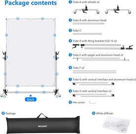 Neewer 3,17x1,67m Supporto Stand per Fondale Sfondo con Ruote & 2x1,4m Diffusore in Tessuto, Sistema di Supporto Girevole a 270°.
