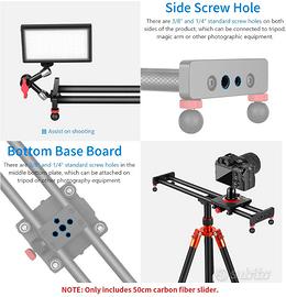 Neewer carrello slider dolly di scorrimento per Camera fibra di carbonio, 50 centimetri con 4 Cuscinetti, Compatibile con iPhone e Cellulari Android e Fotocamere Mirrorless, Carica fino a 1 kg