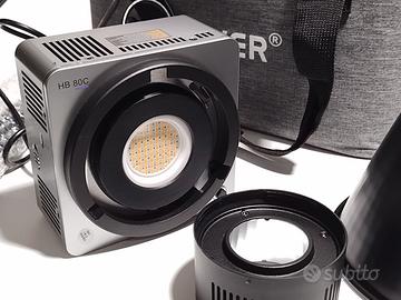 Faretto Led COB ATTACCO bowens ideale per video e foto, RGBW da 80w alimentato a batteria (integrata), con possibilità di alimentazione esterna (USB C) tramite caricabatterie (compreso nella vendita insieme a cavo lungo da 100w) COME NUOVO, usato una volta. Nessun segno d'uso. 2 cicli di carica in totale. Assolutamente perfetto. Comprensivo di tutti gli accessori come dotazione originale. Come sopra +++ IN AGGIUNTA vi trovate un caricabatterie USB-C e il cavo da 100w per alimentazione / ricarica veloce (che NON vi danno in dotazione di solito!) Borsa, accessori, mini-cavalletto e quanto sopra, tutto incluso. Consegna a mano o spedizione disponibile.