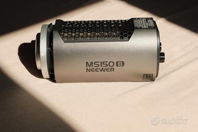 NEEWER MS150B è una luce continua bicolore portatile da 130W, pesa 980g e misura 19,5 x 9,5 x 8cm. Offre una temperatura colore di 2700K-6500K.