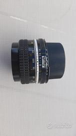 obiettivo 50 mm Nikkor manuale, perfettamente funzionante con lenti in perfetto stato. Diaframma da 1.8 a 22. Messa a fuoco da 0.45 ad infinito con coperchi e senza scatola.