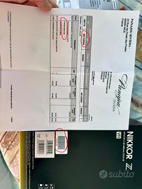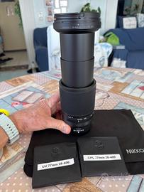 Vendo Nikkor Z 28-400mm f/4-8 VR acquistato il 6/12/2025 presso negozio autorizzato. Garanzia ufficiale Nikon ancora attiva. Condizioni generali: eccellenti — vetri interni perfetti, meccanica perfetta, nessun fungo, nessuna polvere interna. Unico difetto: lieve graffio superficiale sullo strato protettivo dell'elemento frontale, senza alcun impatto sulla qualità delle immagini (verificabile dalle foto allegate). Vendo per cambio sistema ottico (180-600). In confezione originale completa dei suoi accessori: - Tappo Obiettivo LC-77B - Custodia CL-C2 - Tappo posteriore LF-N1 - Paraluce HB-114 Fattura inclusa nella confezione (vedi foto). In regalo due filtri del valore di circa 150 EUR cadauno: - B+W MRC Nano - UV - B+W MRC Nano - Circular Polarizer Prezzo: €870 — trattabile di poco.