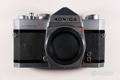 Fotocamere da collezione: Nikomat EL 80 euro, Konica Autoreflex A 60 euro, Konica T3 con obiettivo 28mm 100 euro.