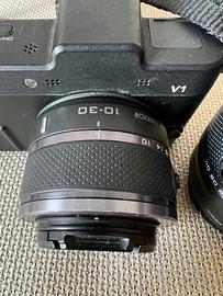 nikon 1 v1 mirrorless + obbiettivo 10-30 + obbiettivo 30-110 + caricabatterie. ottime condizioni. nessun segno di usura, mai caduta.