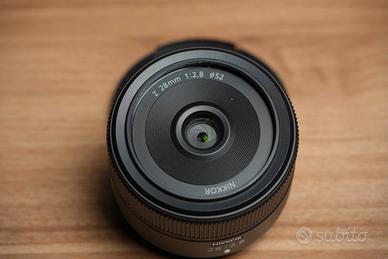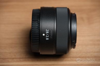 Nikon 28mm F2.8 Z in condizioni eccellenti, compresa scatola e tappi originali in garanzia RCE per ancora oltre un anno.