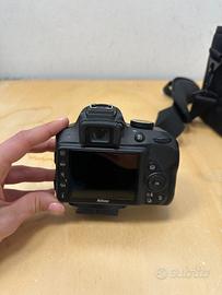 Titolo da inserire al primo posto nella descrizione: Vendo Nikon D3300 Descrizione: come da titolo vendo Nikon D3300 tenuta perfettamente. È stata usata esclusivamente internamente per fotografare prodotti alimentari. Attualmente ha 12000 scatti. Con la macchina fotografica vendo anche: -scheda sd 32gb -batteria aggiuntiva -borsetta apposita -cavo di ricarica La macchina fotografica ha un obbiettivo 18x55 (il suo originale)