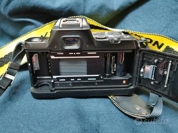 Nikon F401s è una stupenda fotocamera analogica Cioè a pellicola molto bella con obiettivo Nikkor è uno zoom 35-70 AF 3,3 LENTI Immacolata meccanismo fluido nessun graffio mentre la fotocamera presenta un problema io veramente non l'ho mai usata me la regalarono anni fa ma ho notato che l'otturatore non si apre Scatta però non si apre l'otturatore ho cambiato le batterie la stessa cosa probabilmente da rivedere Ma comunque io vendo tutto compresa la sua tracolla originale Nikon. La Fotocamera non presenta nessuna graffio nessuna h8 botta presa Probabilmente è stata ferma per per anni anni. Il tutto ad 80 €. In pratica pagate soltanto l'obiettivo solo interessati non perdi tempo Grazie.