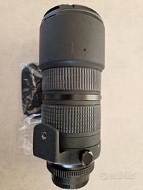 Vendo obbiettivo Nikon AF 80-200 f/2,8 ED D. Ottime condizioni, unico difetto estetico dovuto al trasporto in borsa visibile in foto. Obbiettivo acquistato nuovo da me e utilizzato veramente poco solo per hobby. Completo di tappi originali fronte e retro, scatola originale, custodia in pelle, tracolla per il trasporto, istruzioni. Spedizione disponibile o ritiro a mano zona Falconara Marittima o Jesi.