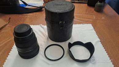 Viene venduto con i tappi ant e post originali , con il suo paraluce a petalo HB-B , il bauletto ( questo ad onore del vero mostra tutti i suoi anni ) e con un filtro Kenko MC UV. Revisionato completamente in Dicembre 2025 da centro assistenza Nikon. Lenti , lamelle e meccanismi perfetti. Possibilità di provarlo .