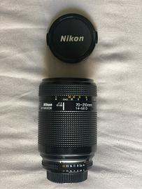 Titolo: Nikon AF Nikkor 70-210mm f/4-5.6 D – Full Frame – Autofocus – Ottime condizioni Descrizione: Vendo Nikon AF Nikkor 70-210mm f/4-5.6 D, teleobiettivo compatibile con attacco Nikon F, in ottime condizioni estetiche e perfettamente funzionante. Ottica versatile ideale per: - ritratti - sport - eventi - fotografia naturalistica - dettagli a distanza Dispone di autofocus tramite motore interno del corpo macchina (AF a vite), quindi funziona in autofocus su reflex Nikon dotate di motore AF interno (serie D7xxx, D90, D600, D700, D750, D800 ecc.). Compatibile con Full Frame (FX) e APS-C (DX). Caratteristiche principali: - Lunghezza focale: 70-210mm - Apertura: f/4 – 5.6 - Attacco Nikon F - Autofocus con motore nel corpo macchina - Compatibile Full Frame FX - Ghiera zoom fluida e precisa - Costruzione solida Nikon Condizioni: Lente pulita, senza graffi evidenti, muffe o difetti. Utilizzato con cura. Perfettamente funzionante. Incluso: - tappo frontale Nikon Possibilità di spedizione o consegna a mano.