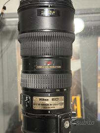 Nikon AF-S 70-200mm f/2.8 VR Ottica professionale Nikon, sempre utilizzata in ambito lavorativo. Perfettamente funzionante in tutte le sue parti. Presenta normali segni di utilizzo sul corpo, come visibile in foto, che non compromettono in alcun modo la resa. •Autofocus preciso •Stabilizzatore VR funzionante •Lenti pulite •Attacco F-mount Ottima soluzione per chi cerca un 70-200 f/2.8 a prezzo accessibile.
