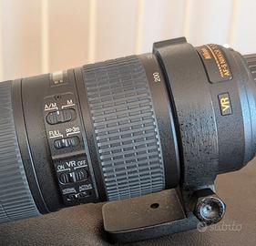 Completo di parasole tappi e adattatore treppiede originale Nikon. Come nuovo funziona alla perfezione. Prezzo 500€. Non ho piu la sua scatola originale. Spedizione Assicurata inclusa.