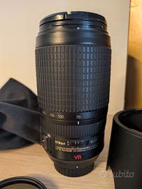 Obiettivo Nikon AF-S 70-300mm f/4.5-5.6 G ED VR Tele per formati FullFrame e APS-C - Stabilizzato Perfetto stato sempre usato con filtro, lenti pulite e prive di muffe. Meccanica fluida e VR perfettamente funzionante. Completo di: - Tappi anteriore e posteriore - Paraluce Nikon HB-36 - Sacca morbida Nikon - Scatola originale Extra - Kit Filtri (67mm): - K&F Concept CPL ultra bassa riflessione NANO – Completo di scatola e porta filtro. - Manfrotto Essential / UV – Fornito con porta filtro. Spedizione a carico Acquirente oppure Possibile consegna a mano (zona Milano/Monza/Pavia).