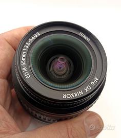 Nikon AF-S DX Nikkor 18-55mm 3.5-5.6G II ED numero di serie: 4154730 Obiettivo zoom autofocus per fotocamere reflex digitali Nikon. Usato in ottime condizioni e perfettamente funzionante. Lenti pulite e senza graffi nè polvere o muffe. Ghiera dello zoom fluida e scorrevole. Con entrambi i tappi anteriore e posteriore. Breve descrizione: Il Nikon AF-S DX 18-55mm f/3.5-5.6 G II ED è un obiettivo zoom per formato APS-C. La messa a fuoco avviene tramite Motore AF a ultrasuoni (micro-USM). Questo piccolo zoom ha un range di focali da grandangolare a normale, tra i più utilizzati nella fotografia generica, paesaggistica, di viaggio e reportage ma estremamente utile anche per ritratti e foto naturalistiche. Inoltre la sua struttura compatta e il design lineare, lo rende un eccellente obiettivo portatile e comodo da trasportare per tutti i giorni. L'obiettivo ha un trattamento antiriflessi decisamente efficiente. L'ottica è dotata di una lente con lavorazione asferica per correggere le imperfezioni visibili alle aperture maggiori e per tenere sotto controllo la distorsione al variare della focale. L'oggetto è usato e viene venduto come descritto e mostrato in foto. Trattandosi di vendita tra privati non è prevista garanzia né restituzione per ripensamento.