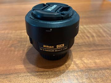 Nikon AF-S DX NIKKOR 35mm f/1.8G – luminosità e qualità da vero must-have Vendo obiettivo Nikon AF-S DX NIKKOR 35mm f/1.8G, uno dei fissi più apprezzati per reflex Nikon formato DX. Compatto, leggero e incredibilmente luminoso, è l’obiettivo ideale per ritratti, street photography, reportage e scatti in condizioni di scarsa luce. Apertura f/1.8: splendidi sfocati (bokeh) e ottime prestazioni anche di sera Nitidezza eccellente già a tutta apertura Autofocus rapido e silenzioso (AF-S) Focale “normale” (equivalente a ~52mm su FX), perfetta per uso quotidiano Condizioni: ottime, sempre usato con cura privo di qualsiasi graffio Tappo anteriore e posterore incluso Ideale sia per foto amatoriali evolute che per chi vuole fare un salto di qualità Un obiettivo che non può mancare nel corredo Nikon DX. Vendo solo per inutilizzo.