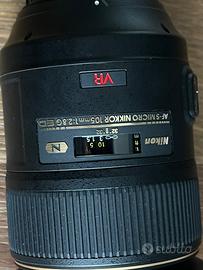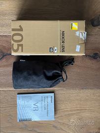 Vendo Nikon AF-S VR Micro-Nikkor 105mm f/2.8G IF-ED, obiettivo macro professionale Nikon, in ottime condizioni e perfettamente funzionante. COME NUOVO, usato pochissimo. Ottica molto nitida e versatile, ideale per macro, ritratti e fotografia di dettaglio, con stabilizzazione VR e autofocus rapido e preciso. Caratteristiche principali: -Attacco Nikon F -Lunghezza focale 105mm -Apertura f/2.8 costante -Stabilizzazione VR (Vibration Reduction) -Rapporto macro 1:1 -Autofocus AF-S silenzioso -Qualità ottica professionale Nikon Condizioni: -Ottime condizioni generali -Lenti pulite, senza graffi o muffe -Autofocus e stabilizzazione perfettamente funzionanti Dotazione: -Obiettivo Nikon 105mm f/2.8 Macro -Paraluce originale -Tappo anteriore e posteriore -Scatola originale