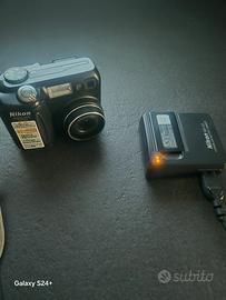 funzionante con imballi e garanzie originali . 2 batterie e caricabatterie tutto funzionante in omaggio 2 schede di memoria. Nikon Coolpix 4300 è una fotocamera digitale compatta che ha fatto la storia del settore "prosumer" dei primi anni 2000. È nota per essere l'erede della fortunata Coolpix 885, di cui riprende il design ergonomico migliorando però il sensore. Ecco le caratteristiche tecniche principali: 📸 Sensore e Immagine Risoluzione: 4.0 Megapixel effettivi. Tipo di sensore: CCD da 1/1.8" (una dimensione generosa per l'epoca, che garantiva una buona qualità d'immagine). Risoluzione massima: 2272 \times 1704 pixel. Sensibilità ISO: Auto, 100, 200, 400. 🔍 Ottica e Messa a Fuoco Obiettivo: Zoom Nikkor 3x (38-114 mm equivalente nel formato 35 mm). Apertura diaframma: f/2.8 - f/4.9. Macro: Impressionante per i tempi, permette di mettere a fuoco fino a 4 cm di distanza. Autofocus: Sistema a 5 aree (Multi-AF) con modalità singola o continua. ⚙️ Funzioni e Scatto Modalità Scene: 12 modalità preimpostate (Ritratto, Paesaggio, Notturno, ecc.). Esposizione: Automatica e Manuale (permette un discreto controllo creativo). Otturatore: Da 8 secondi a 1/1000 di secondo. Video: Registra clip senza audio a una risoluzione di 320 \times 240 pixel (max 35-40 secondi). Best Shot Selector (BSS): Una funzione classica Nikon che scatta una serie di foto e salva automaticamente quella più nitida. 🔋 Hardware e Memoria Monitor: LCD TFT da 1,5 pollici (110.000 punti). Mirino: Ottico a immagine reale (molto utile per risparmiare batteria). Memoria: Utilizza schede CompactFlash (Tipo I). Batteria: Batteria ricaricabile al litio EN-EL1.
