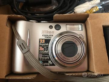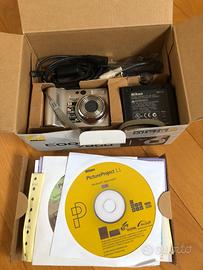 Macchina fotografica in scatola originale completa di tutti gli accessori; lo sportellino posteriore non chiude bene come da fotografia