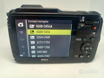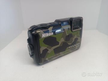 Nikon Coolpix AW120 con una batteria (usata) e cavo di ricarica. Si riceve ciò che è in foto. Fotocamera digitale - compatta - 16.0 MP - 1080P - 5zoom Ottico x - Wi-Fi - Camouflage Non assicuro il funzionamento della fotocamera sott'acqua poiché avendo tanti anni potrebbe aver perso l'impermeabilità. Disponibili foto di esempio. NO GARANZIA, NO RESI.