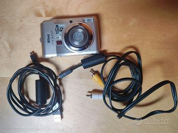 fotocamera vintage Nikon Coolpix L19 da 8 Mpx, in condizioni estetiche discrete, perfettamente funzionante, includo cavetto USB e cavetto di collegamento video originali.