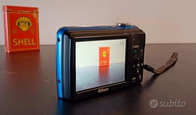 Di dimensioni compatte e molto dinamica in colore blu metallizzato, questa fotocamera digitale è in condizione PERFETTE in CONFEZIONE ORIGINALE con tutto il contenuto originale