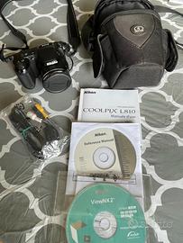 Fotocamera digitale Nikon con manuale d'uso in Italiano e i vari accessori indicati nel manuale (manca solo il cavetto USB). Non e' piu' in garanzia ma usata pochissimo. La custodia che includo non e' originale Nikon.