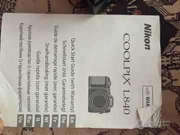Compresa di scatola oroginale, certificato di garanzia, istruzioni originali, cavetto usb, tracolla nikon, custodia