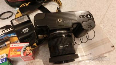 vendo macchina fotografica analogica Nikon Coolpix N6000. Macchina americana corrispondente alla italiana Nikon F-601m. In condizioni perfette. Tutto funzionante. Obiettivo AF Nikkor 35-70 mm , 1:3.3-4.5. Completa di flash sakar 24M. Istruzioni. Con batteria nuova. 2 rullini e borsa.