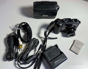 Coolpix P5100, fotocamera digitale, 12.1 megapixels, con caricabatterie, batteria di ricambio, cavi in dotazione, custodia, scheda SD 8GB. Venduti a parte su Subito 3 aggiuntivi ottici (Fisheye, tele e grandangolo) e custodia subacquea