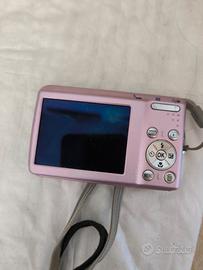 Fotocamera digitale compatta "punta e scatta" ultra sottile ed elegante. Sensore CCD 8 megapixel, zoom ottico 3x (38-114mm), monitor LCD da 2,5pollici con rivestimento antiriflesso . Scocca in alluminio colore Rose Sakura . In ottime condizioni, accessori originali (caricabatteria e batteria) Anno di uscita 2008 Funzionante