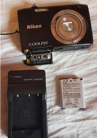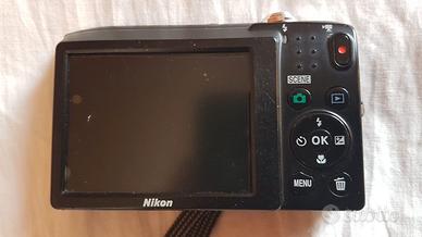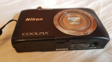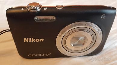 Macchina foto Nikon Coolpix S2800 sensore da 20 Megapixel. Fa video di 1280x 720p a 30 FPS Buone condizioni, funzionante. Con bustina di custodia e caricabatterie non originali. Batteria originale in dotazione, funzionante. Piccoli segni d'uso, display con pellicola di protezione che si potrebbe togliere, senza scheda SD