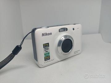 Fotocamera Nikon Coolpix S30 bianca e grigia In buone condizioni. Funzionante con due pile ricaricabili da 1.5V (non incluse), il funzionamento con pile differenti non adeguate non è garantito. Flash funzionante. Si riceve ciò che è in foto. Non assicuro il funzionamento della fotocamera sott'acqua poiché avendo tanti anni potrebbe aver perso l'impermeabilità. Disponibili foto di esempio. NO GARANZIA, NO RESI.