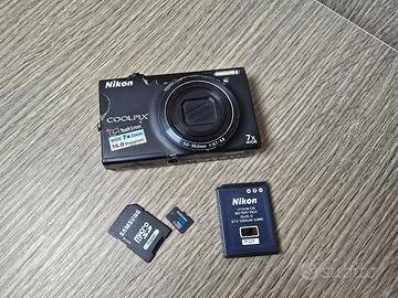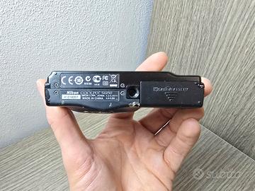 Fotocamera digitale Nikon Coolpix S6150, compatta e facile da usare. Testata e perfettamente funzionante con batteria e memory sd. Scocca che tende a "spellarsi" col tempo, tipico difetto estetico di questo modello, la rende esteticamente meno bella ma non intacca le funzioni - Obiettivo NIKKOR 7x Wide Optical Zoom ED VR. - Touch Screen. - Zoom 7x. - 16.0 Megapixels.