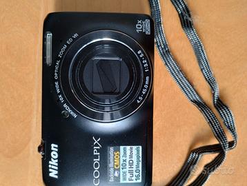 Vendo fotocamera digitale compatta Nikon Coolpix S6300 da 16MP con zoom ottico 10x e registrazione video Full HD 1080p.