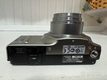 Macchina fotografica Nikon COOLPIX S9100 silver completo di Scatola originale, manuale in lingua italiana e dotazione originale prevista per il mercato Italiano: batteria lithium-Ionen, cavo usb, cavo audio video, caricabatteria, software CD ROM in più custodia macchina fotografica antiurto e scheda di memoria SD. Caratteristiche tecniche: zoom 18X, CMOS BLAKSIDE Illumination, 12.1 megapixel, Full HD Muvies e Quick RESPONSE. L’apparecchio è stato usato pochissimo è custodito benissimo tanto da non avere nessun graffio e nessun difetto.