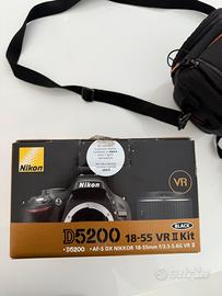 Vendo Reflex Nikon D5200, kit completo con obiettivo AF-S DX NIKKOR 18-55mm f/3.5-5.6G VR II.