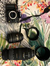 Corpo macchina, obiettivo 24-120 Nikon, teleobiettivo 120-400 Sigma, 2 batterie e 2 caricabatterie, ottime condizioni, scarsissimo utilizzo negli anni, numero limitato di scatti. Praticamente nuova. Regalo zaino imbottito per il trasporto a chi acquista.