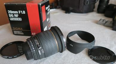 Vendo Obiettivo Sigma per Nikon, 20mm F 1,8 EX DG ASPHERICAL RF, praticamente nuovo, con filtri UV e Polarizzatore, in confezione originale.