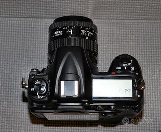 Nikon D300 formato Dx, scatti 59360. Obiettivo Af Nikkor 35-70 f 3,3-4,5 macro come nuovo. Il corpo macchina viene fornito con battery grip DSTE, 2 batterie Nikon, carica batterie e cinghia nativi. Tutti i tappi. No box. Le foto sono parte integrante dell' annuncio.