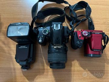 Vendo per inutilizzo queste due fotocamere, nikon d3000 presenta molteplici graffi sullo schermo ma che non compromettono la funzionalità nell’utilizzo,comprende un obiettivo base nikon da 18-55 mm,in piu in omaggio regalo un flash esterno Neewer completamente nuovo, utilizzato realmente 2 volte. Nikon b500 si presenta con dei piccoli graffietti sullo schermo ma che non compromettono il suo utilizzo, schermo regolabile, e una fotocamera compatta digitale fantastica, piccola e performante, riesce a riprendere tranquillamente la Luna con una qualità a dir poco stupefacente. preferisco vendita a mano.