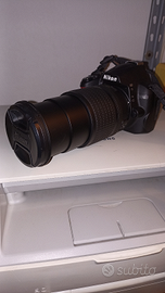 Per cambio macchina, dotata di tele obiettivo Nikon dx swm ed IF Aspherical infinito-0.45mm/1.48 ft diametro 0.67. completa di carica batteria, manuale e custodia.