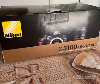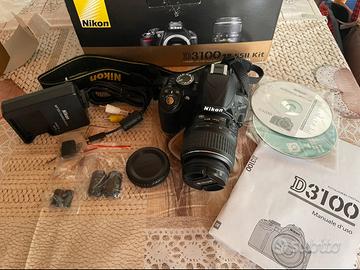Reflex Nikon D3100 con scatola originale dotata di: -AF-S DX Zoom-Nikkor 18-55mm (con doppio coperchio) -tracolla nikon -caricatore nikon (manca batteria) -cavo tv -supporti vari + manuale